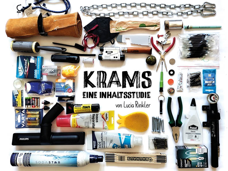 Das Buch Krams – Eine Inhaltsstudie befasst sich mit Krams, anhand Bildern von Kruscht-Sammlungen acht verschiedener Personen mit unterschiedlichen demografischen Hintergünden.
